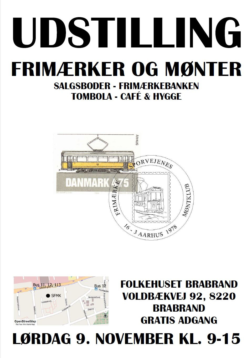 Sporvejenes Frimærke- og Møntklub inviterer alle interesserede til en spændende dag i frimærkernes og mønternes tegn. Udstillingen byder på et væld af eksponater, der spænder fra det nørdede til spændende temasamlinger. Der vil blandt andet være ballonpost, en tur i Marselisborg Skov, tjekkoslovakiske varianter og tyske helsagers udvikling efter krigen.